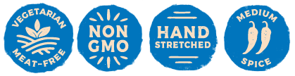 No wonder - many Indian street carts offer pizza. Our Spinach Paneer Pizza starts with hand-stretched naan, tomatoes and mozzarella cheese. We top it with finely chopped spinach, savory pieces of our paneer (cheese), and a blend of ginger and other spices. Then we bake it in a tandoor oven and fight over the largest slice!