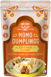 What is a Momo? It's a dumpling popular across the Himalayas, including India, but not a soup dumpling and not a potsticker. Unlike those, our Momos are bursting with vibrant sauce and bold flavors. We craft them with marinated protein and creamy sauce in delicate drumpling dough, then steam them so they're ready in as little as 2 minutes. As if there weren't enough flavor already, we also include chutney for dipping. No need for Momo FOMO, we've got you!